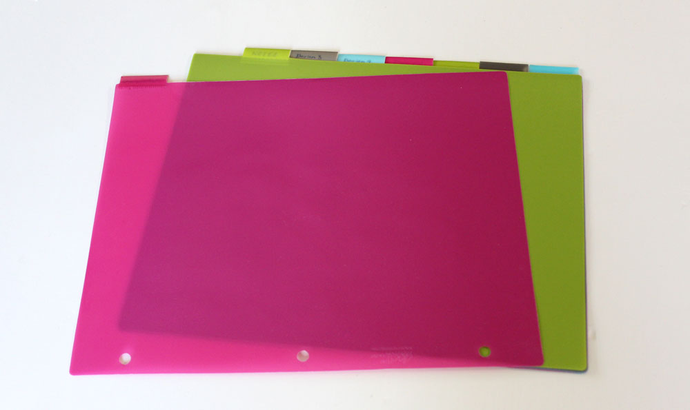 Three-ring binders come in a variety of colors and sizes, so feel free to choose one that fits your style. Think about what will make you feel good when you see it on your shelf. Colors are nice, but I like to stick with black or white; that way if I need more later, they will match. Also, think about what size you like. Bigger is not always better if you can’t fit it neatly into your favorite bag. Remember to make a fun cover and labeled spine with your name and phone number; if nothing else, make sure to get a business card or index card with your contact information tucked somewhere visible…just in case.